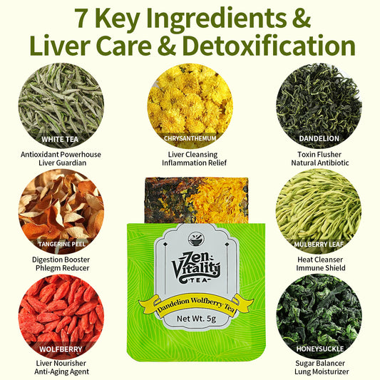 ZenVitality - Dandelion Wolfberry Tea dandelion Leaf & Root tea Organic 15 Bags Supports Kidneys & Liver Health Goji Berry Chrysanthemum Cassia Seed tea-Non-GMO Support Digestion & Boost Immune System